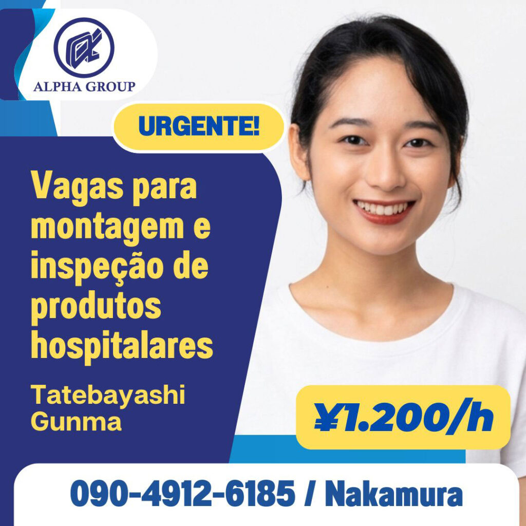 Montagem e inspeção de produtos hospitalares (VagaD110326ALPHAG) em Tatebayashi, Gunma.